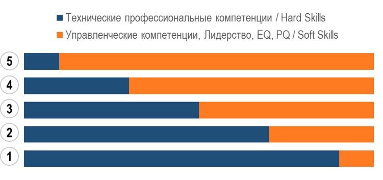 Диаграмма в начале статьи - не про глубину познаний и навыков между Hard Skills и Soft Skills на разных уровнях позиций, а про их значимость для карьеры на том или ином управленческом уровне.